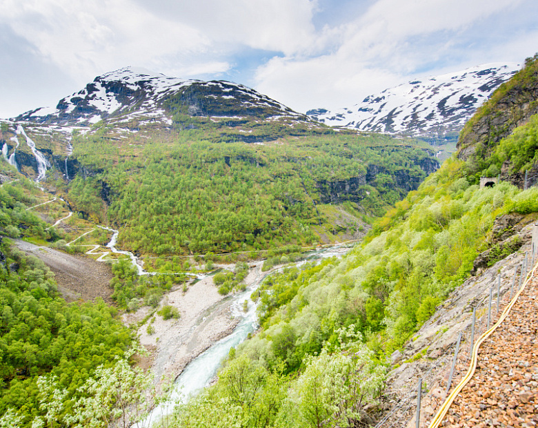 The Flom railway is one of the steepest in the world and is famous for its breathtaking bridges and tunnels winding among the mountains. Remarkably, 18 of the 20 tunnels were built by hand.