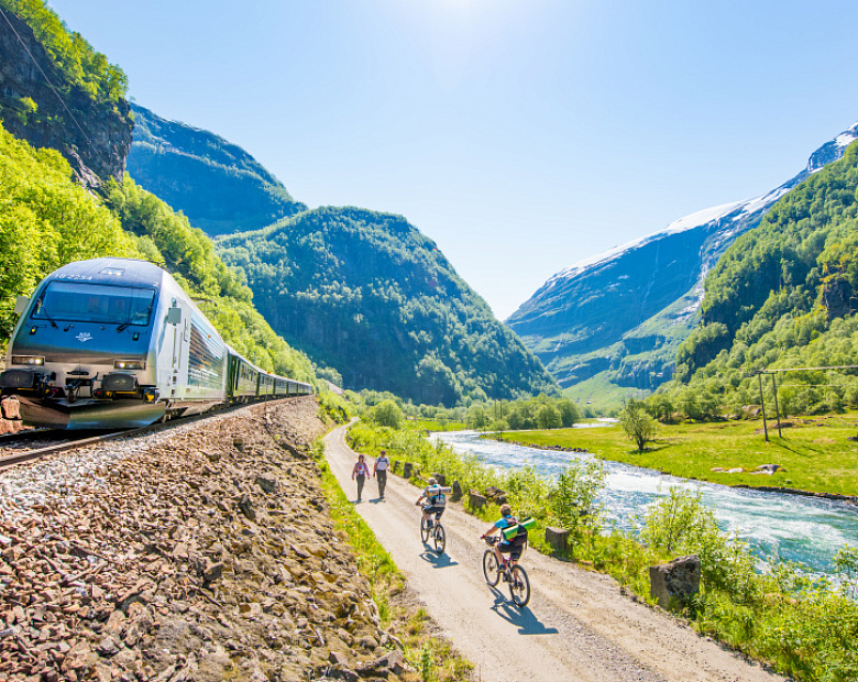 In one hour, the train rises from sea level at Aurlandsfjord in Flom to the mountain station of Myrdal at 867 metres above sea level. During the journey you can enjoy some of the most scenic views in Western Norway.